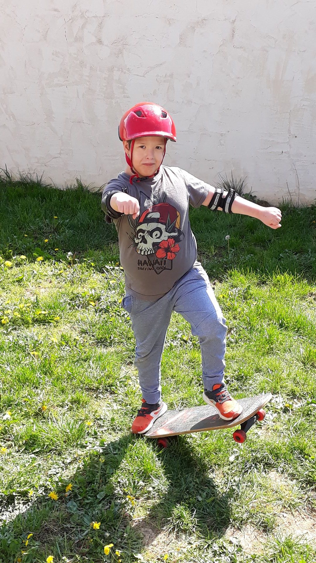 Léo jouant au foot avec son frère et faisant du skateboard. »